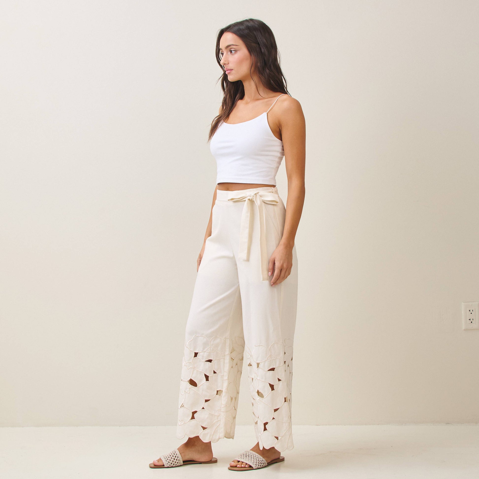 Floral Embroidered Cutout Pant