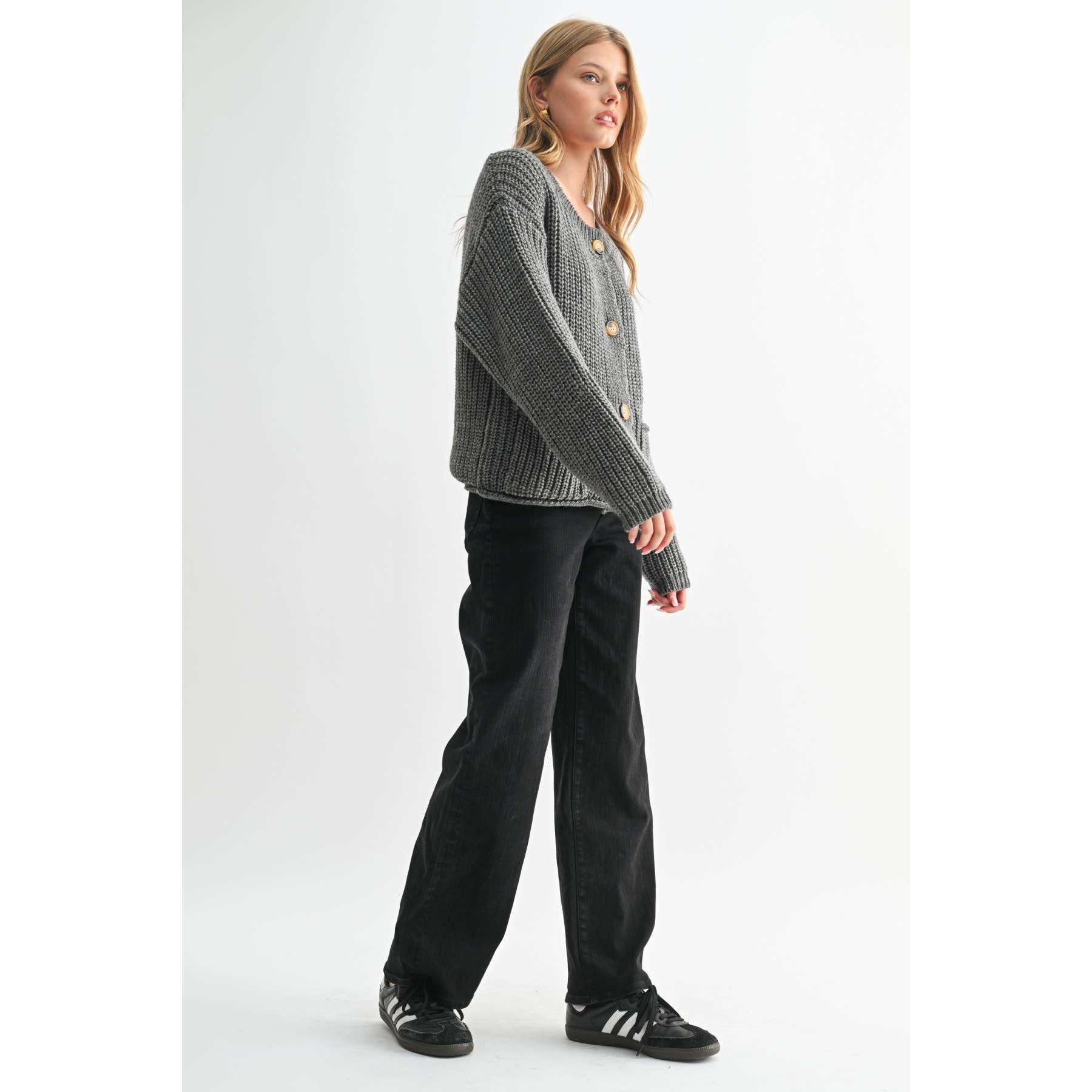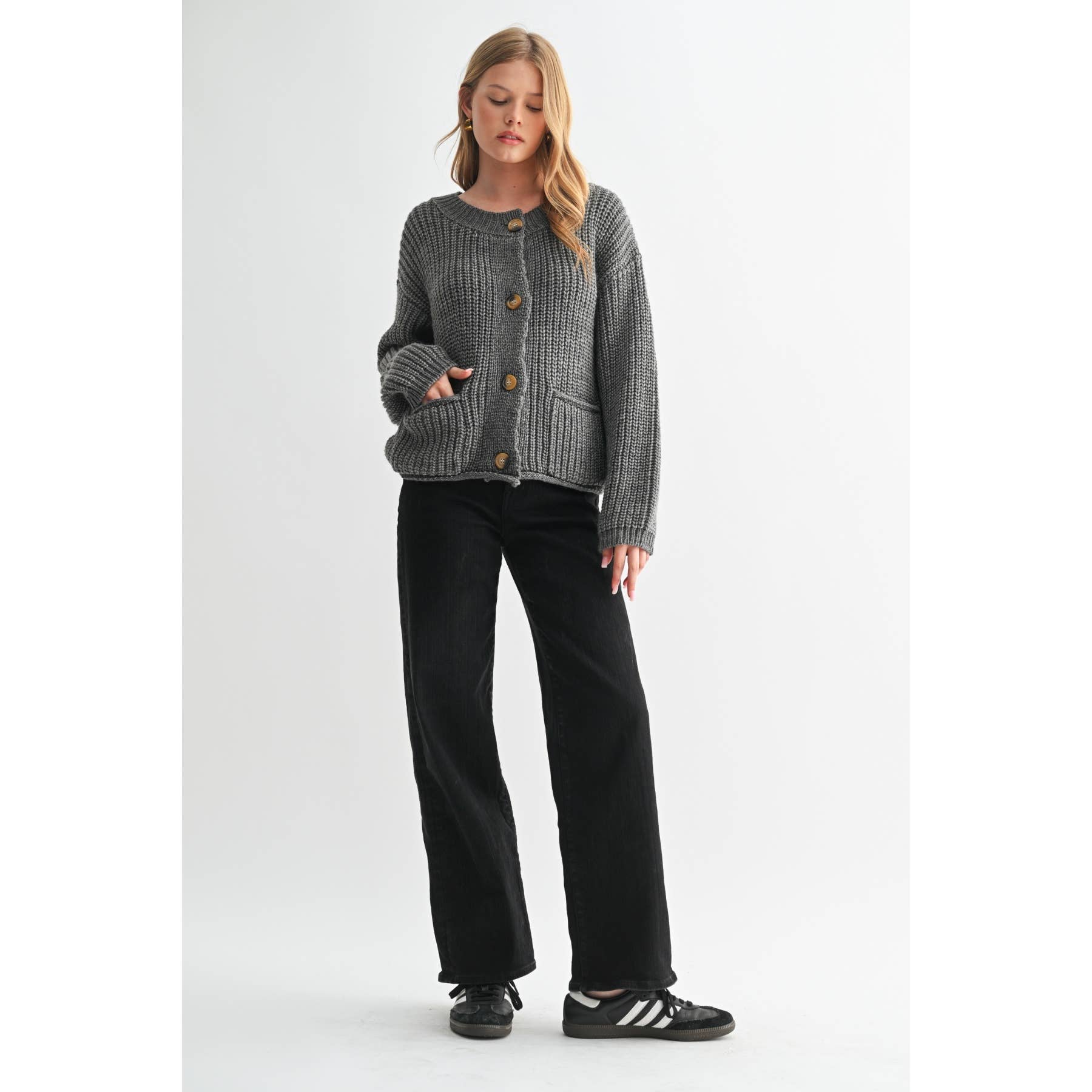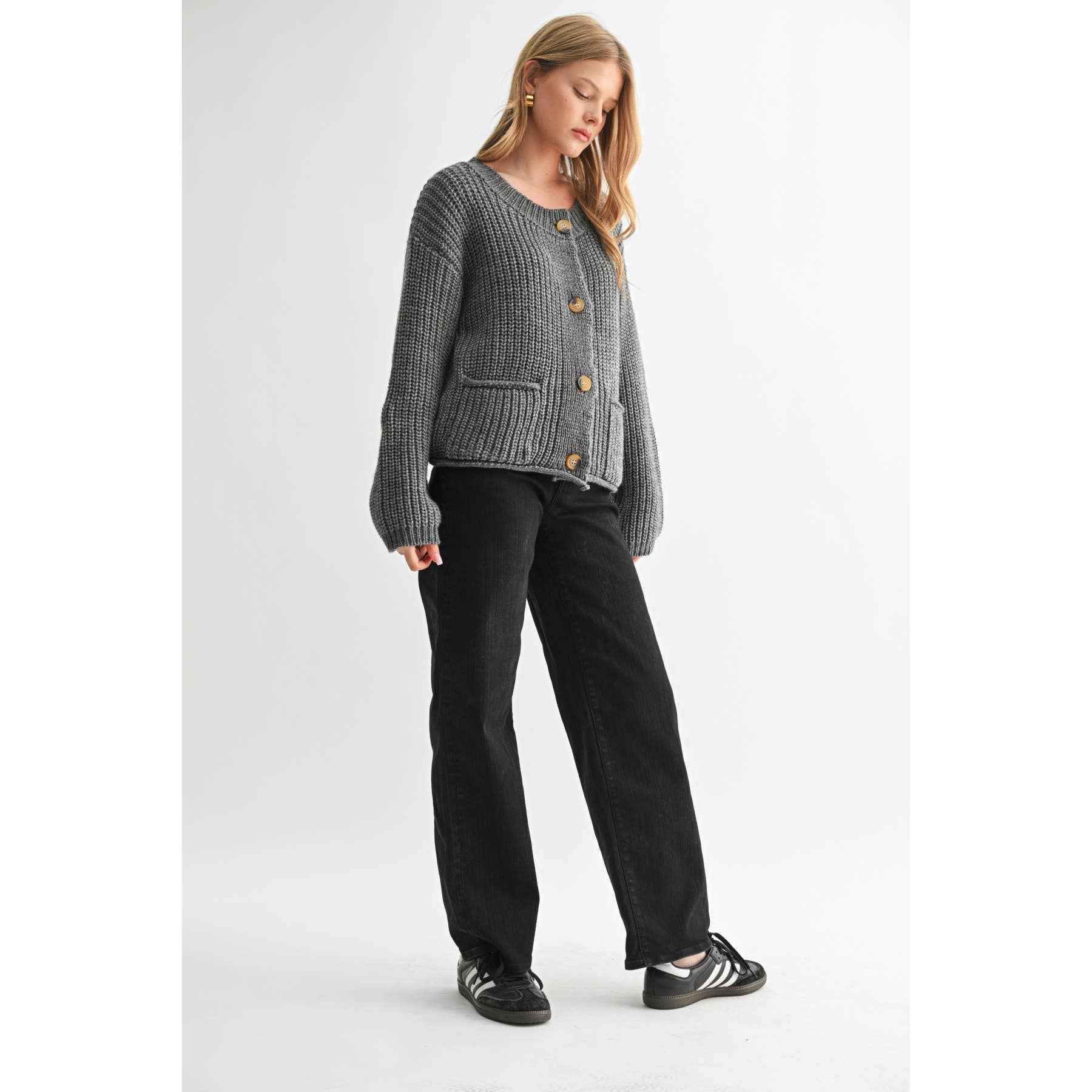 The Chunky Knit Sweater Cardigan is a wardrobe staple. This piece combines timeless style with the latest trends. The chunky knit design adds a unique touch to this versatile cardigan. Pair it effortlessly with your favorite outfits. A must-have for every contemporary woman. Stay stylish with our Chunky Knit Sweater Cardigan.