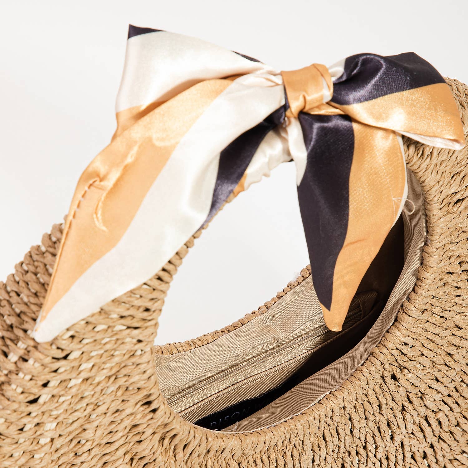 The Juliette Straw Satchel is the perfect blend of charm and function. Crafted from sturdy bamboo straw and finished with a silky bow detail on the top handle, this satchel brings effortless elegance to any outfit. Features an easy-access main compartment and an interior zipper pocket to keep your essentials secure.