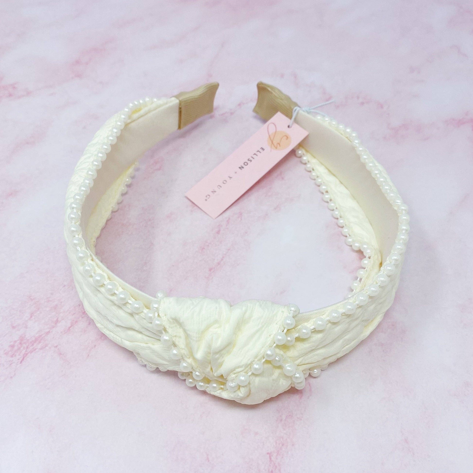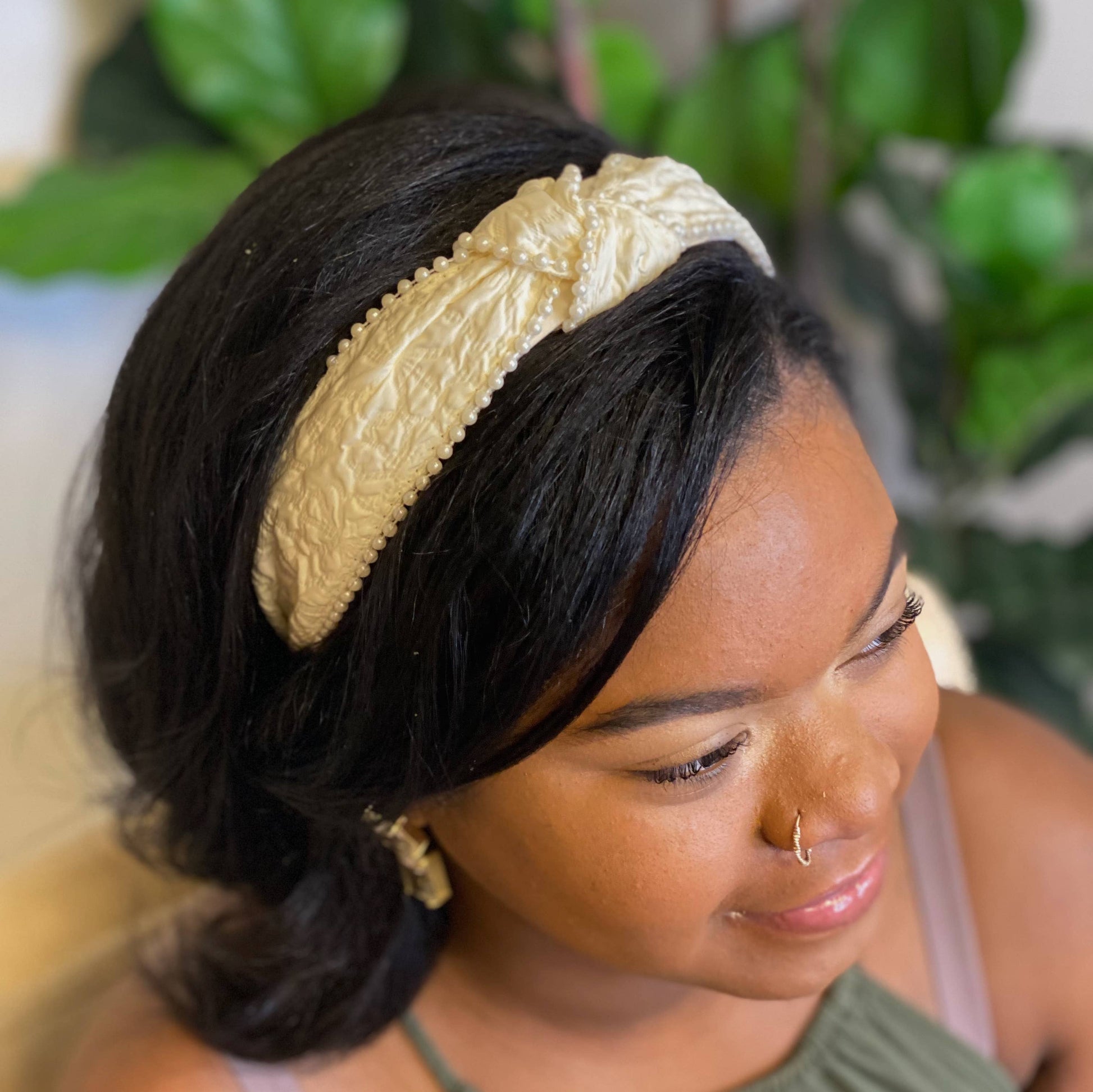 This Elegant Knot Pearl Embellished Headband adds a classic and stylish touch to any look.