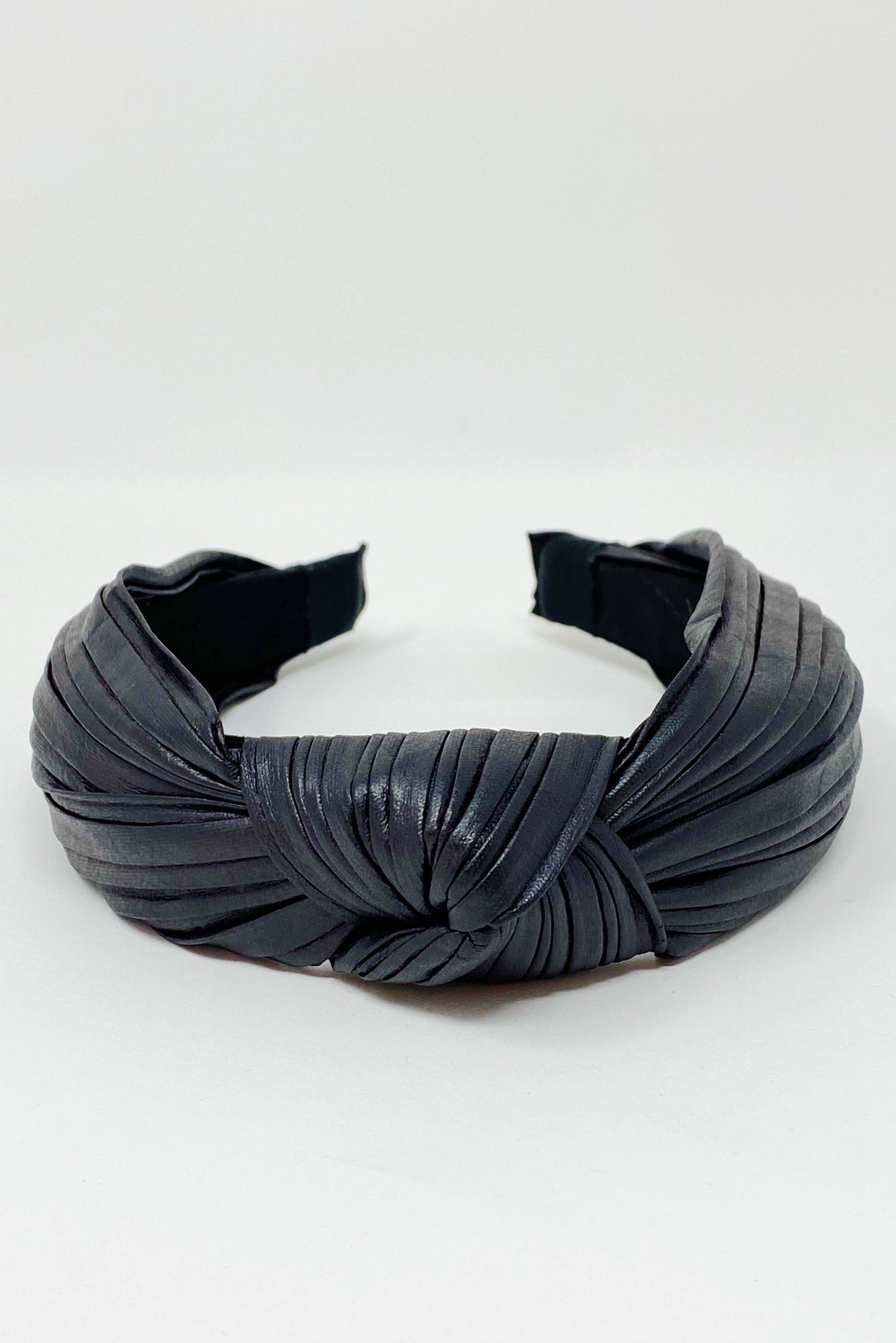 This leather-like pleated fabric knotted headband is a beautiful statement piece to dress up any outfit!