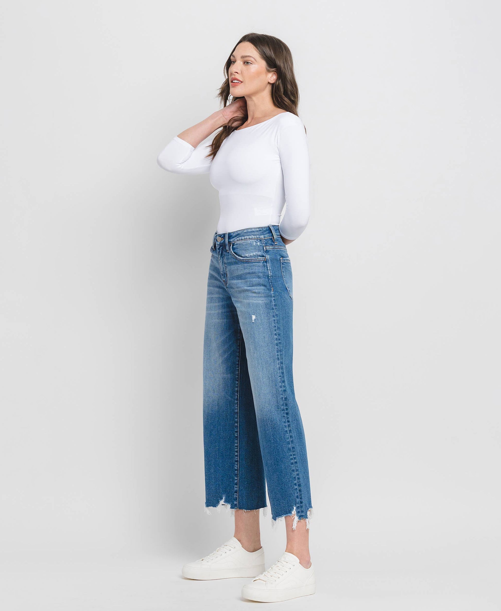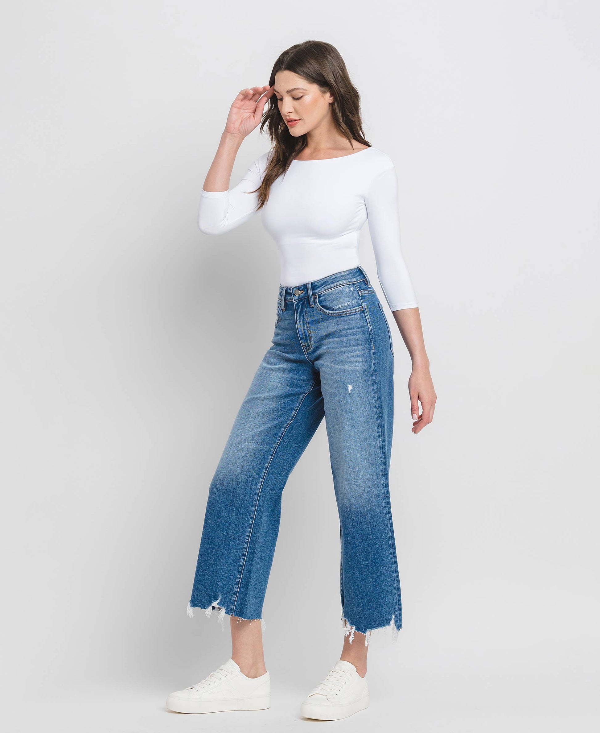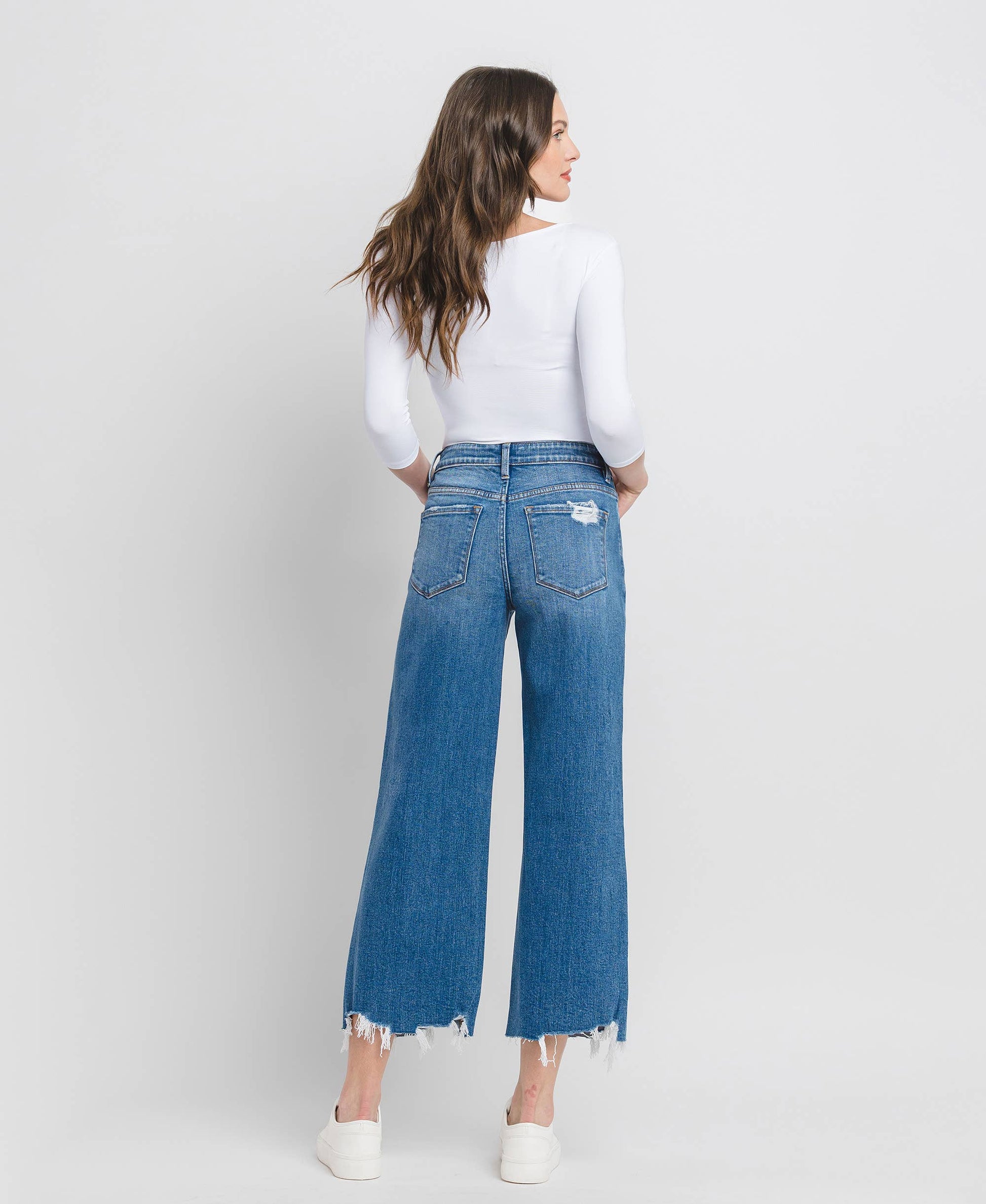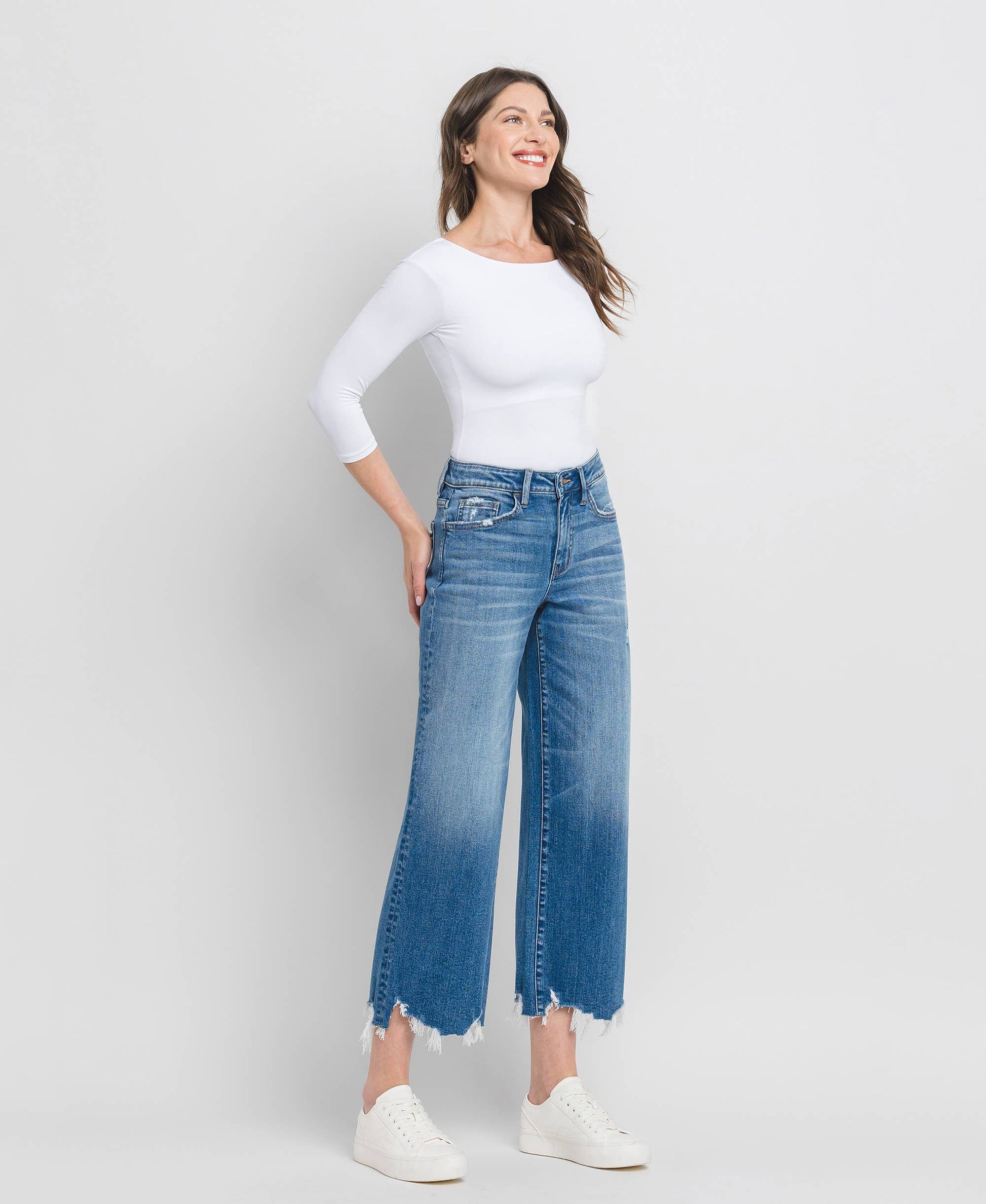HIGH RISE CROP WIDE LEG JEANS