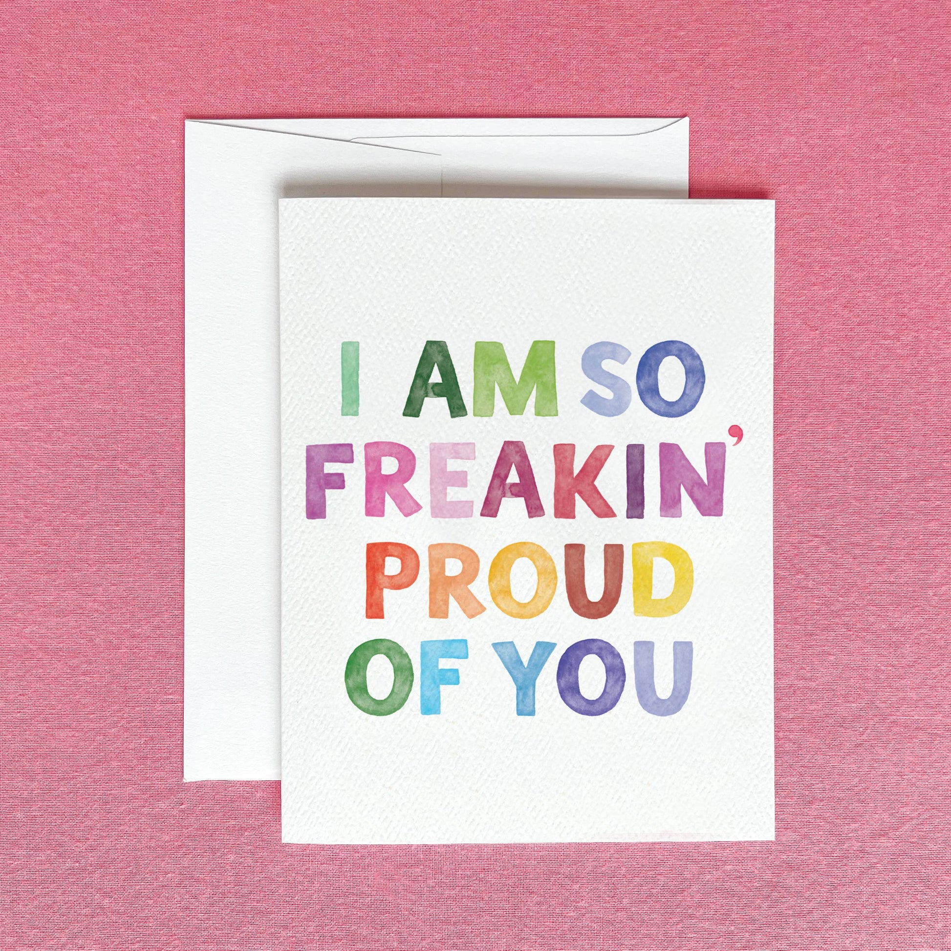 For the moments when “so proud” just isn’t enough. Bold and colorful with the phrase “I’m So Freakin’ Proud of You” in rainbow lettering, it’s a vibrant high-five for anyone who is crushing it!
