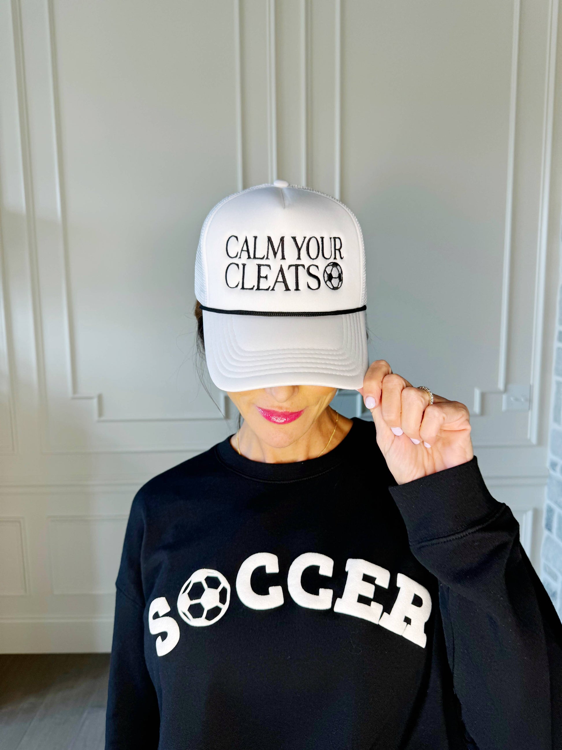 Featuring a trendy trucker design and our Calm Your Cleats logo, this hat is the perfect accessory for any soccer game adventure.